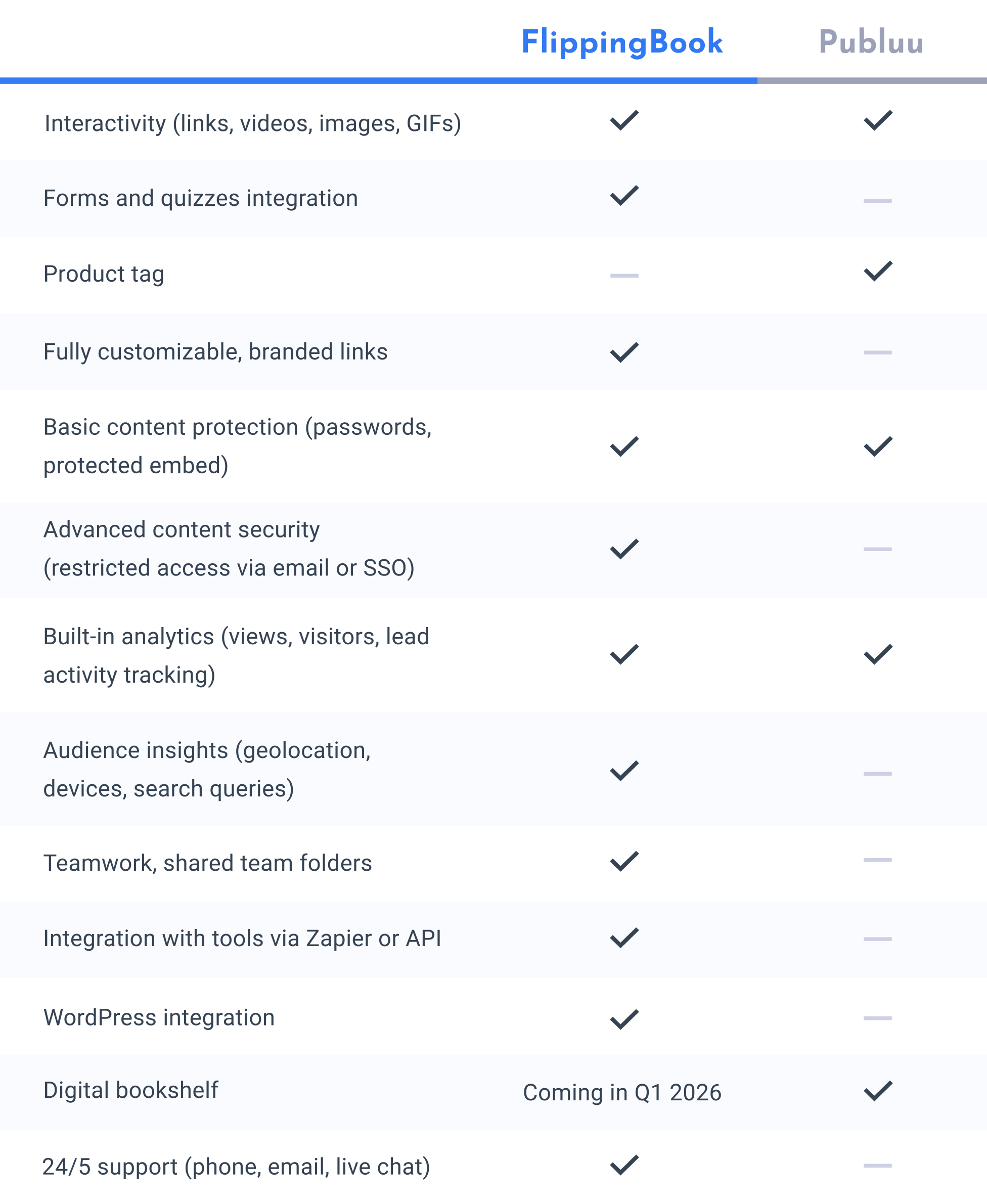Great flipbooks don’t just look good—they work for your business. While Publuu covers standard flipbook features, FlippingBook supports broader business goals and is built for brands and teams that want to: