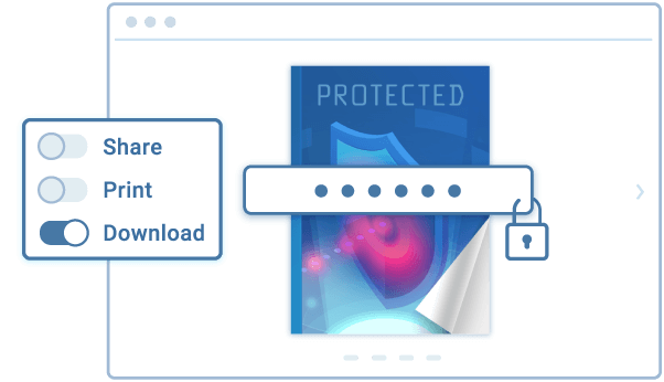 To keep your sales and marketing proposals safe, we equip you with numerous content protection tools. Gate your flipbook with a lead form or a password, disable sharing and printing, or restrict reader access via email or single sign-on—you can adjust the level of content security so it fits your goals best.