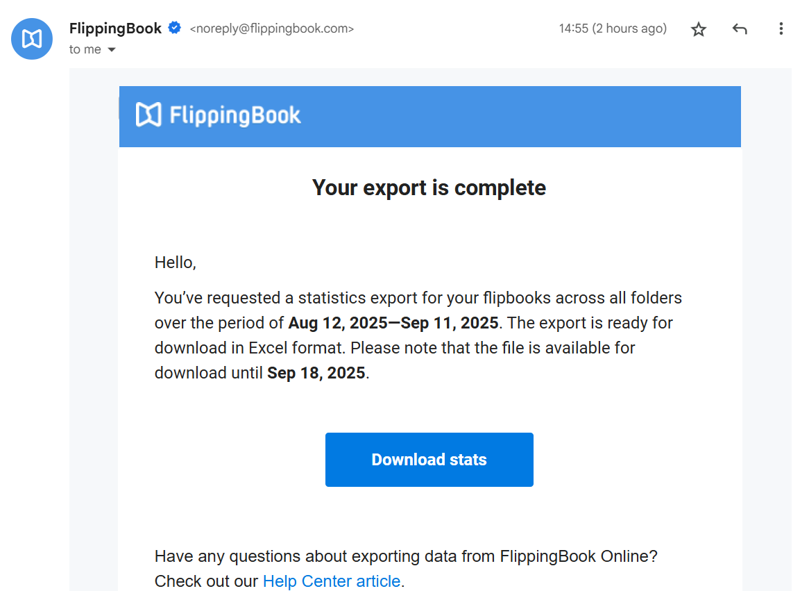 Here’s how you can export a report for your flipbooks from your account: