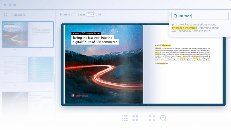 A handy sidebar with page thumbnails is very convenient if your readers want to see page previews right away and quickly find the information they need in your publication.