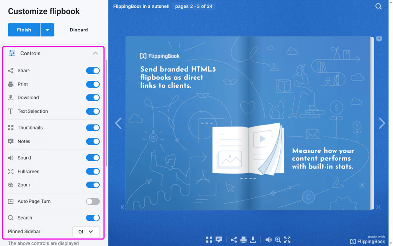 How to control options available to readers in a flipbook?
