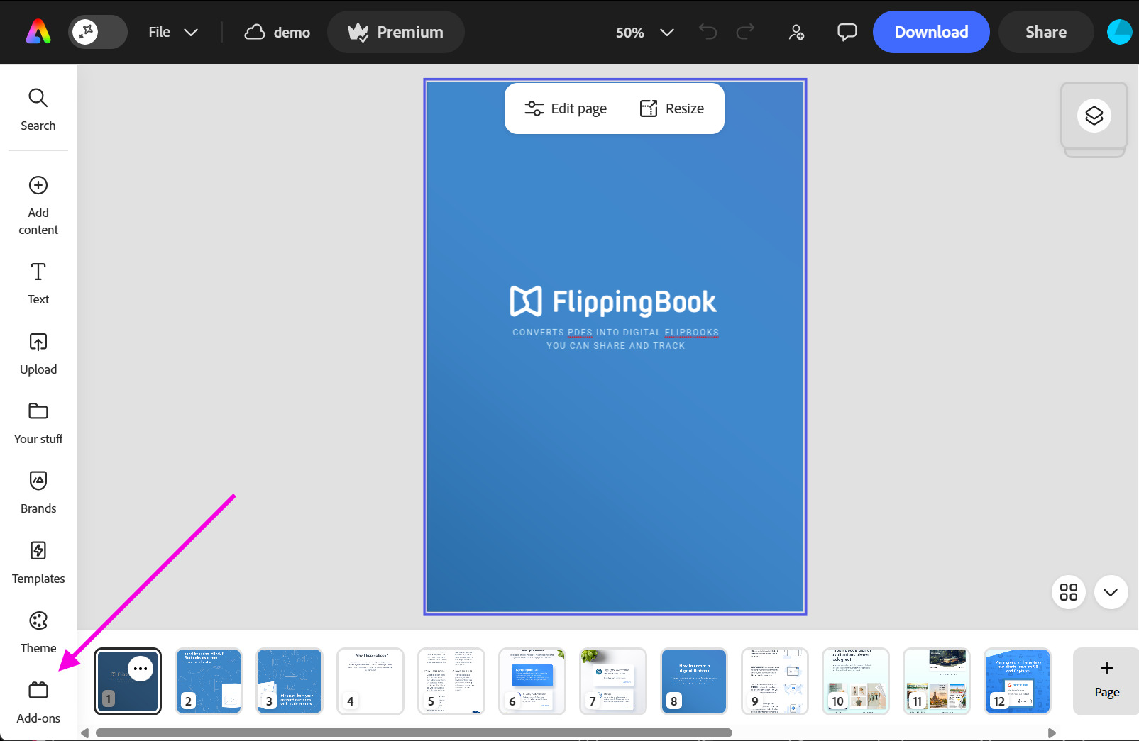 - Manage in FlippingBook opens the flipbook page in the FlippingBook Online account. There, you can customize the publication, add images and videos, apply your branding, view stats, and more. Now that you know the available options, take a look at our article Next steps after creating your first flipbook to learn how they work.