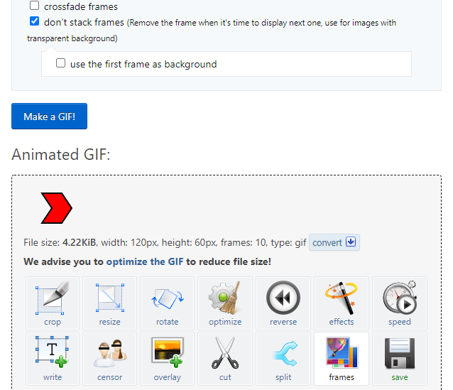 After a few seconds, you’ll see a preview of your GIF. But note that the size is 10.3 MB, not the 5.8 MB that we promised.
